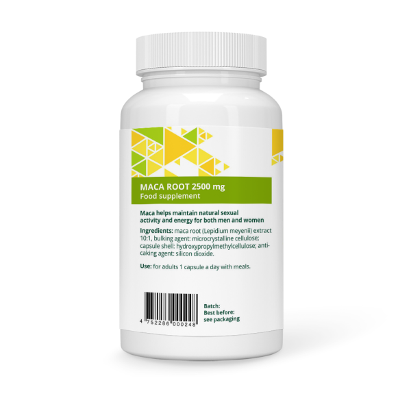 Maca šaknis yra puikus papildas energijai ir ištvermei didinti. Padeda gerinti tiek fizinę, tiek psichinę savijautą.