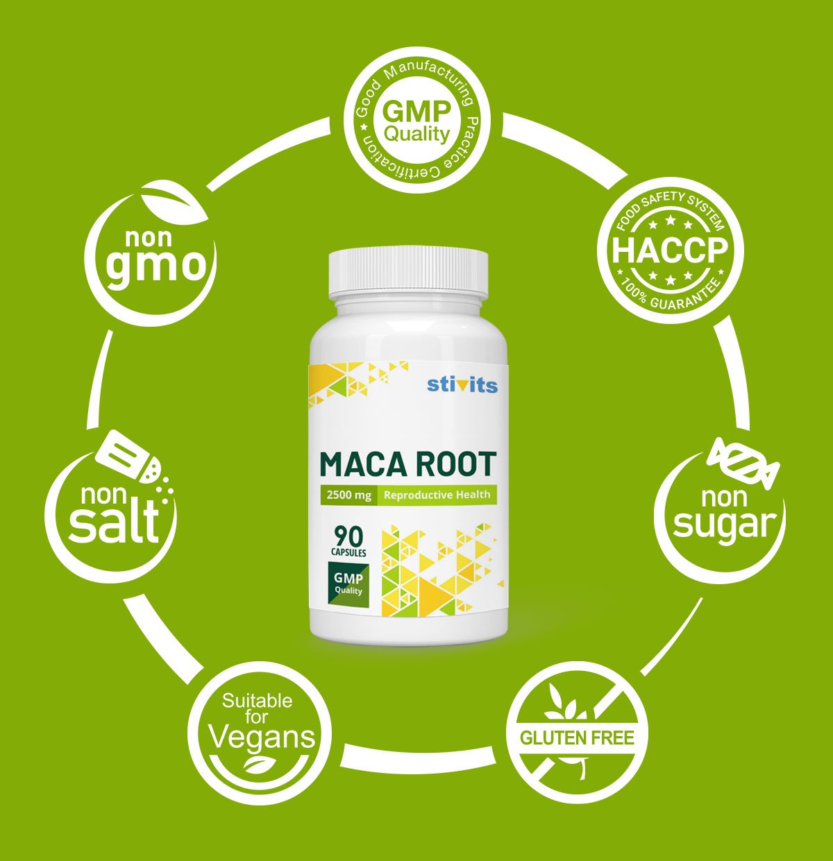 Stivits Maca sisaldab maca’t, rohttaimelist taime, mis on pärit Lõuna-Ameerikast, eriti kõrgmäestikupiirkondadest. Igapäevane Stivits Maca lisandamine on mõeldud seksuaaltervise toetamiseks, energiataseme tõstmiseks ja üldise heaolu edendamiseks.