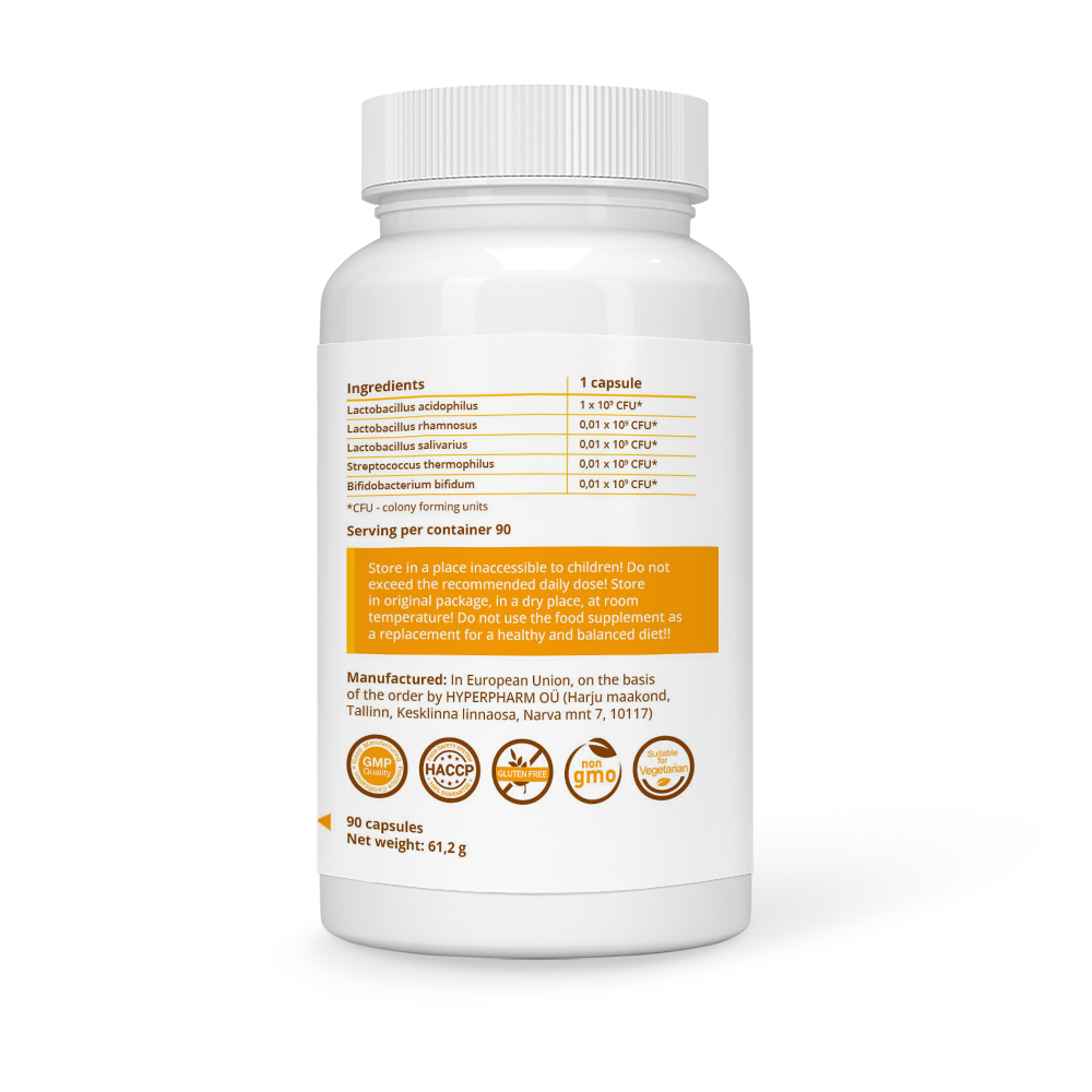 Lakto- ja bifidobakterite kompleks koos streptokokkidega. Varustab sõbralikke baktereid nii seede- kui ka immuunsüsteemiga.