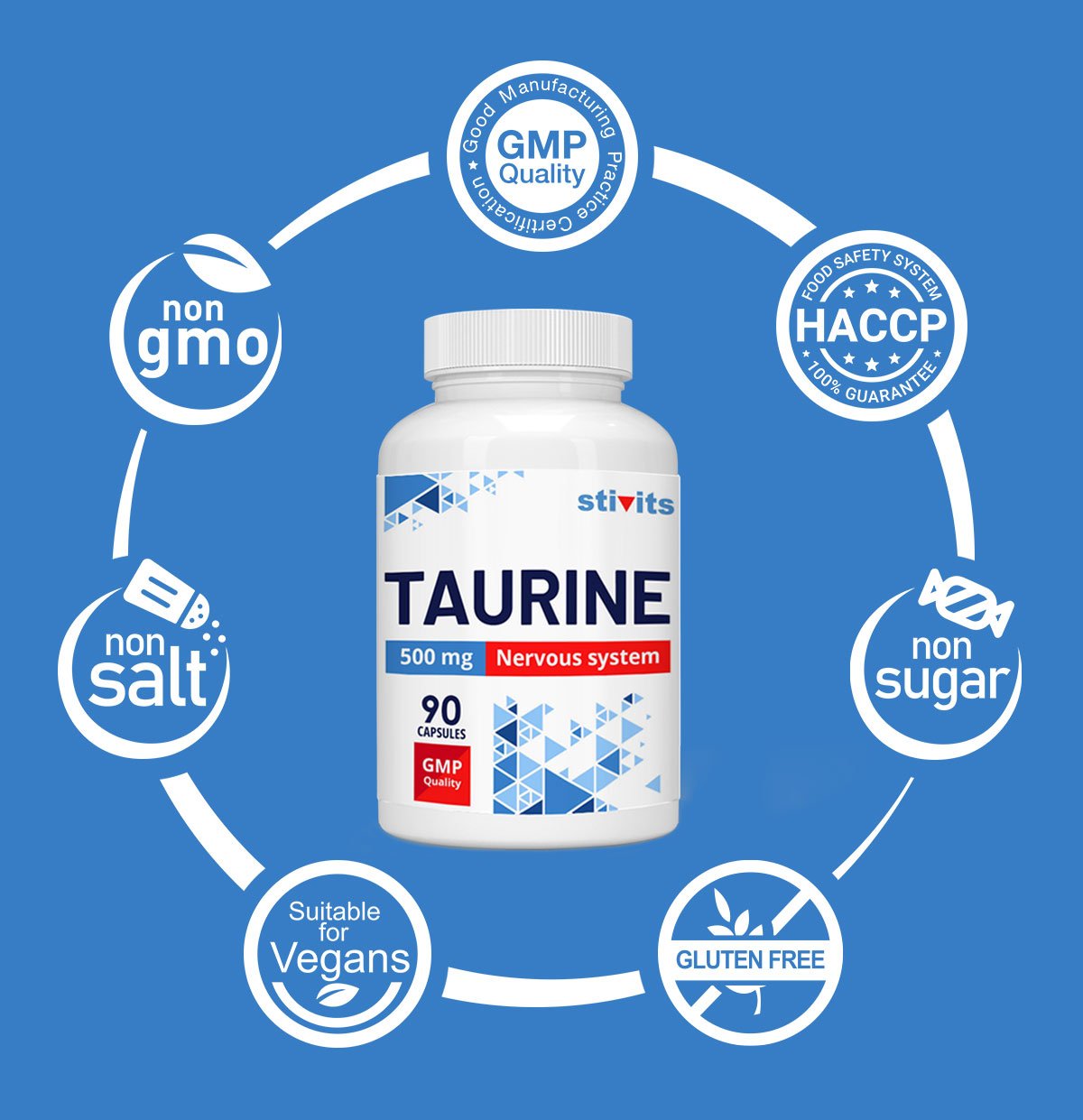 Koostisosad: tauriin, täiteaine: mikrokristalliline tselluloos; kapsli kate: hüdroksüpropüülmetüültselluloos; paakumisvastased ained: magneesiumstearaat, ränidioksiid; täiteaine: dikaltsiumfosfaat.