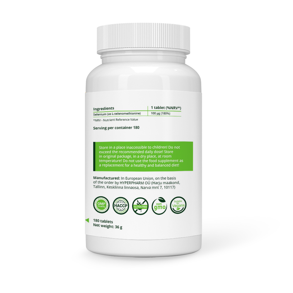 Selēns L-selenometionīna formā ir būtisks mikroelementu avots, kas darbojas kā spēcīgs antioksidants, aizsargājot šūnas no oksidatīvā stresa bojājumiem. Tas atbalsta vairogdziedzera darbību, stiprina imūnsistēmu un veicina vispārējo veselību un labklājību.
