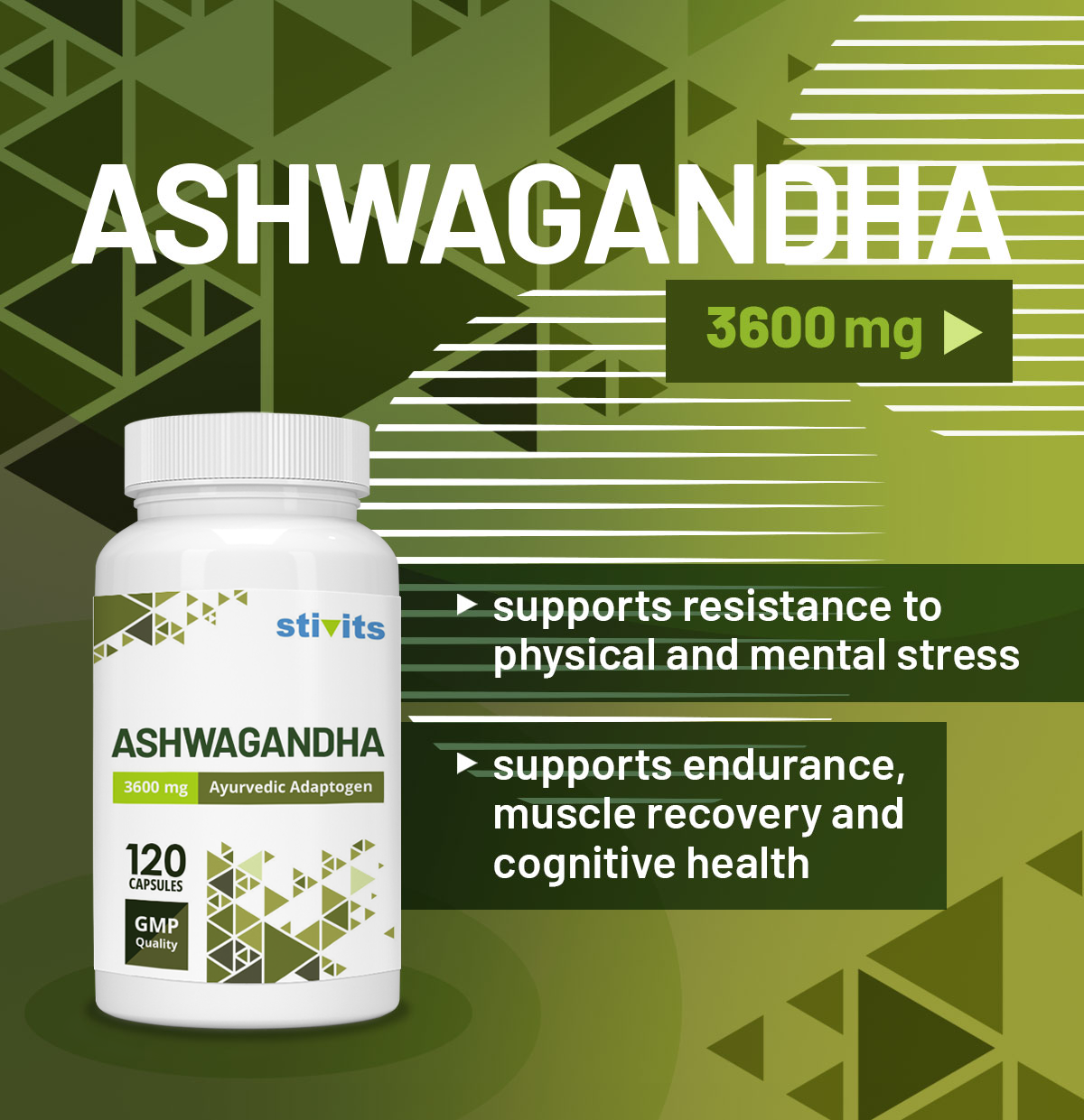 Stivits Ashwagandha is a comprehensive extract derived from the root of the Ashwagandha (Withania somnifera) plant. Research indicates that Ashwagandha acts as an adaptogen, promoting balanced resilience to both physical and mental stress. It contributes to enhanced endurance, muscle recovery, and cognitive well-being.