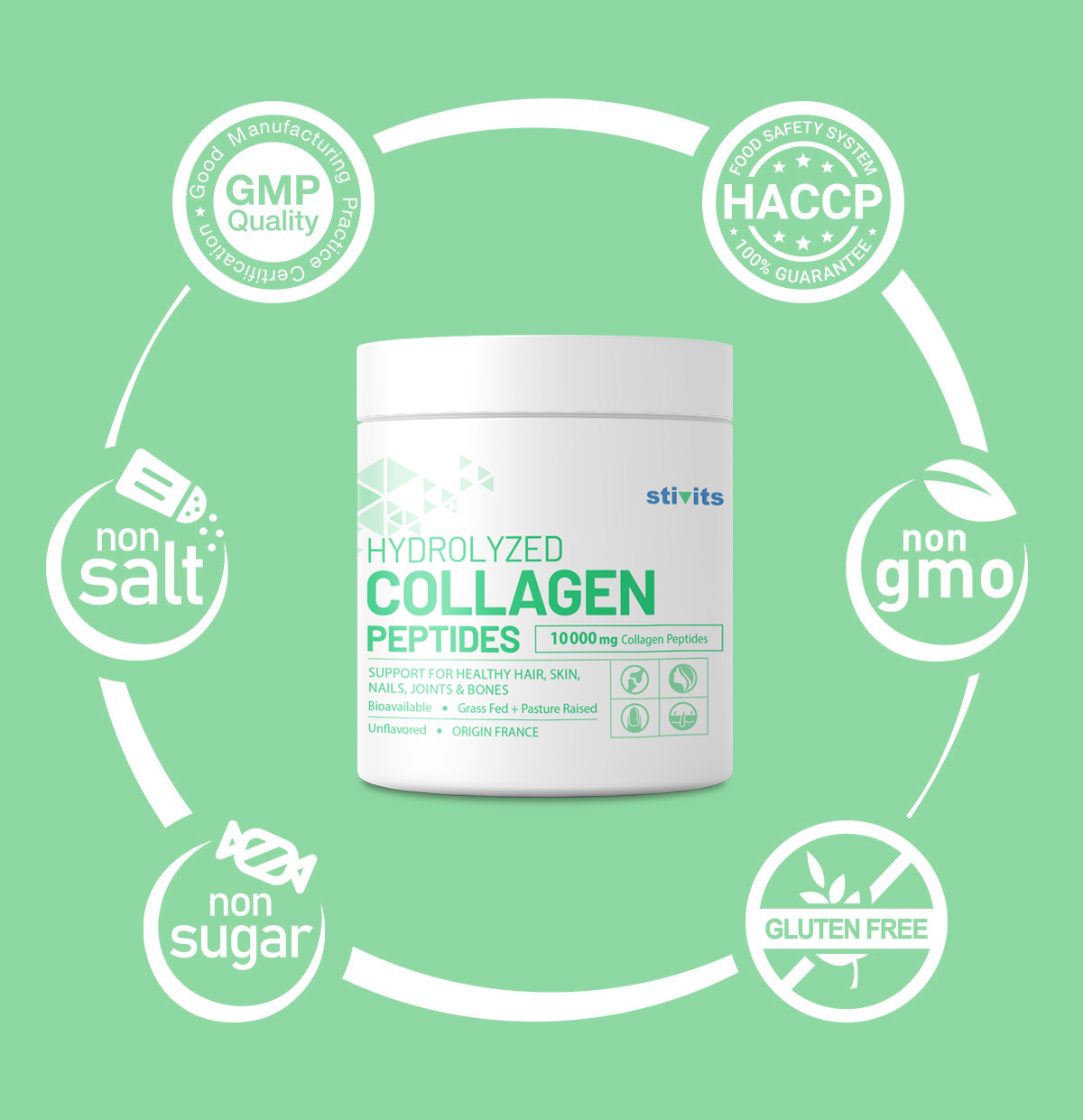 Hydrolyzed Collagen Peptides containing type I and type III collagen offer several potential benefits for overall health and wellness:
