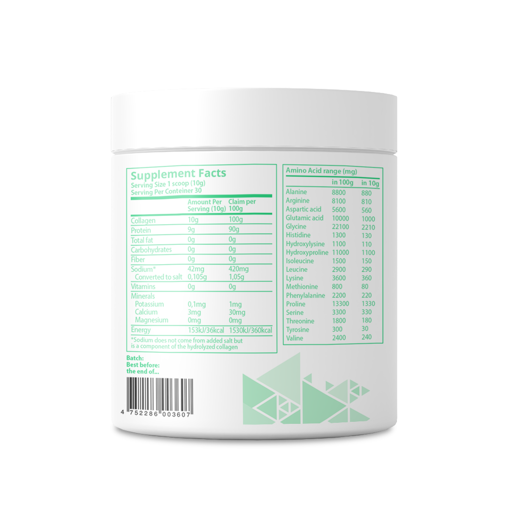 *Sodium does not come from added salt but is a component of the hydrolyzed collagen