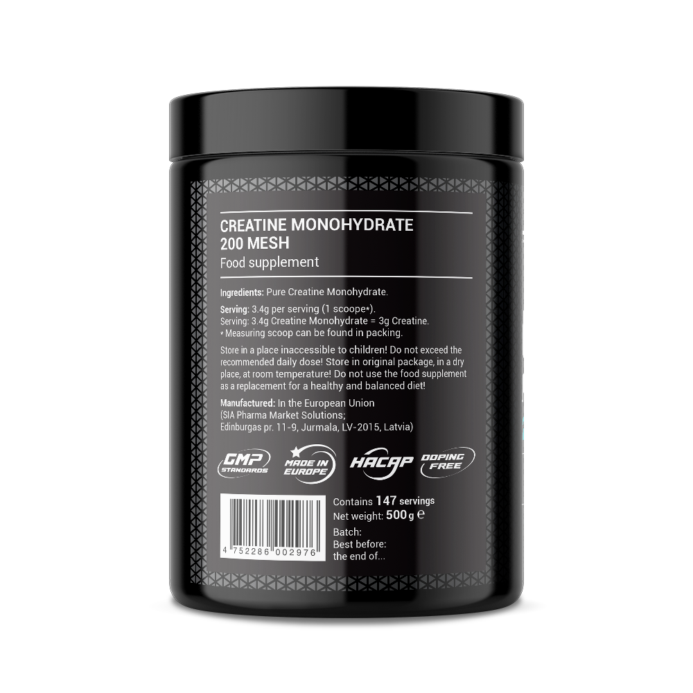 Original price was: €49.50.€27.25Current price is: €27.25.Creatine Monohydrate 100% Pure Vegan Powder 200 mesh 147 servings 500g