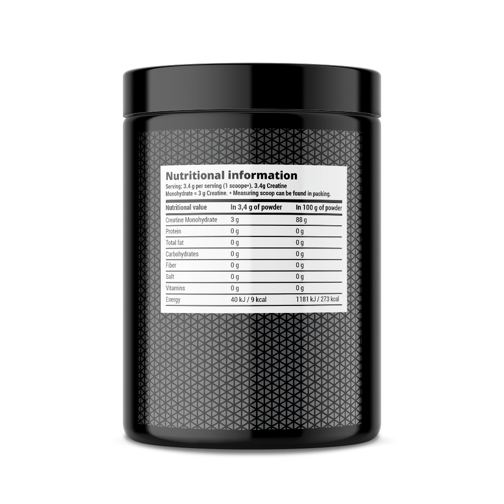 Serving: 3.4g per serving (1 scoope*). Serving: 3.4g Creatine Monohydrate = 3g Creatine.