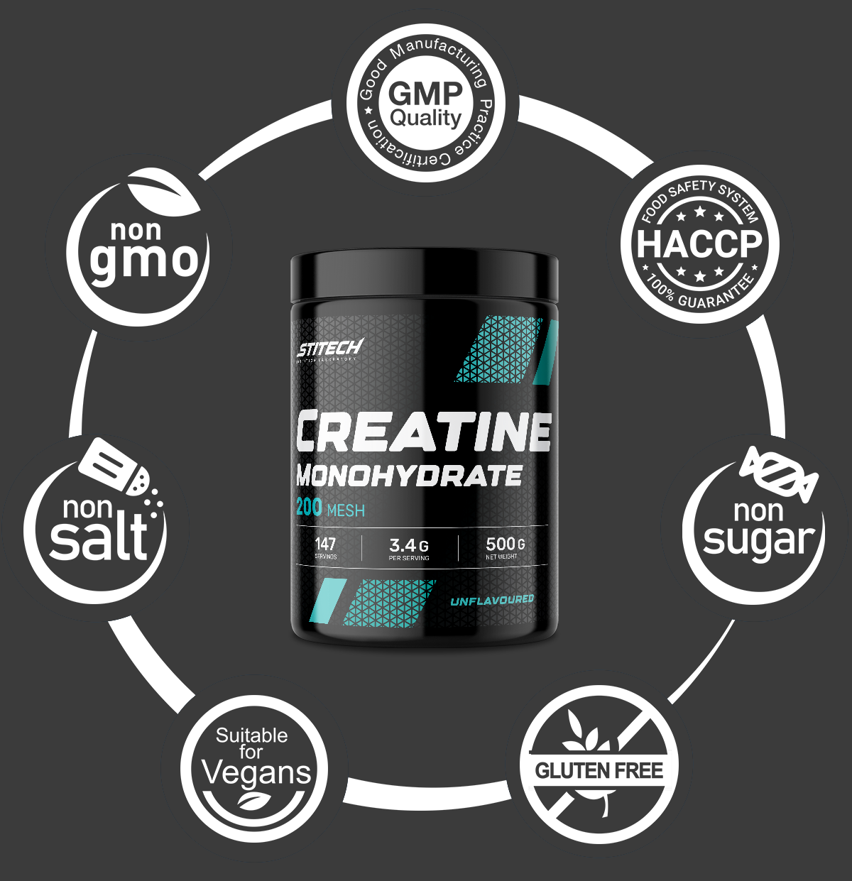 Creatine Monohydrate 100% Pure Vegan Powder 200 mesh 147 servings 500g
