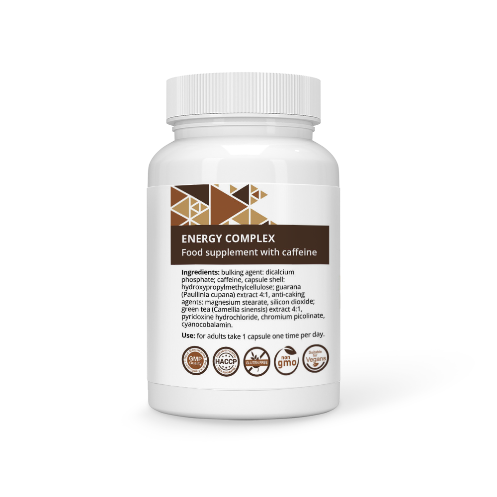 Original price was: €23.70.€16.59Current price is: €16.59.Energy Complex With Caffeine Vegan Capsules