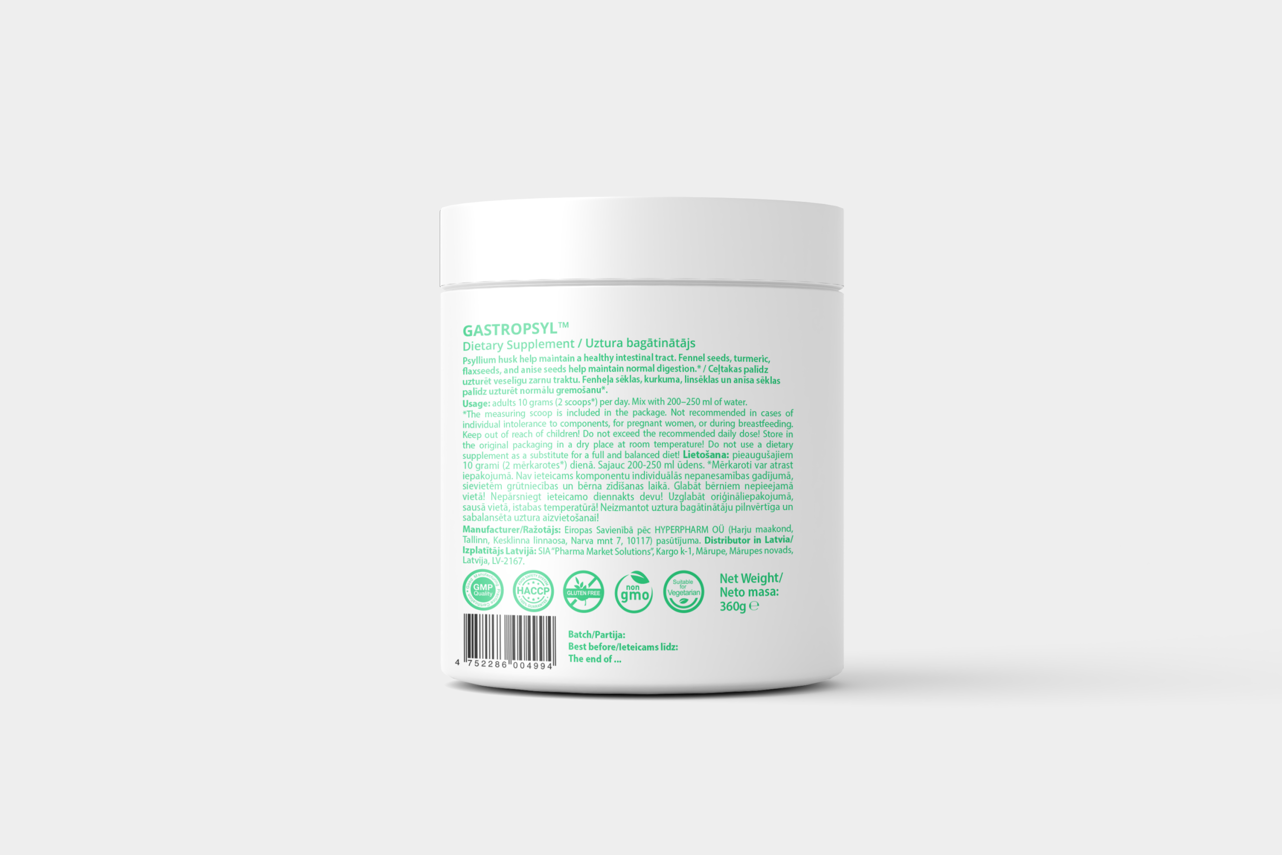 Gastropsyl is a natural fiber and probiotic blend designed to support digestive health, promote regular bowel movements, and maintain a healthy gut microbiome. It combines psyllium husk, flaxseed, turmeric, fennel, anise, inulin, and a powerful mix of 18 probiotic strains to gently support gut comfort and digestion.