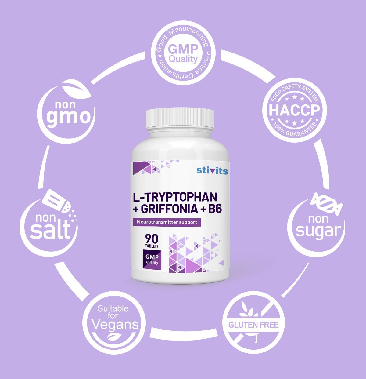 L-Tryptophan+Griffonia+Vitamin B6 vegan tablets
