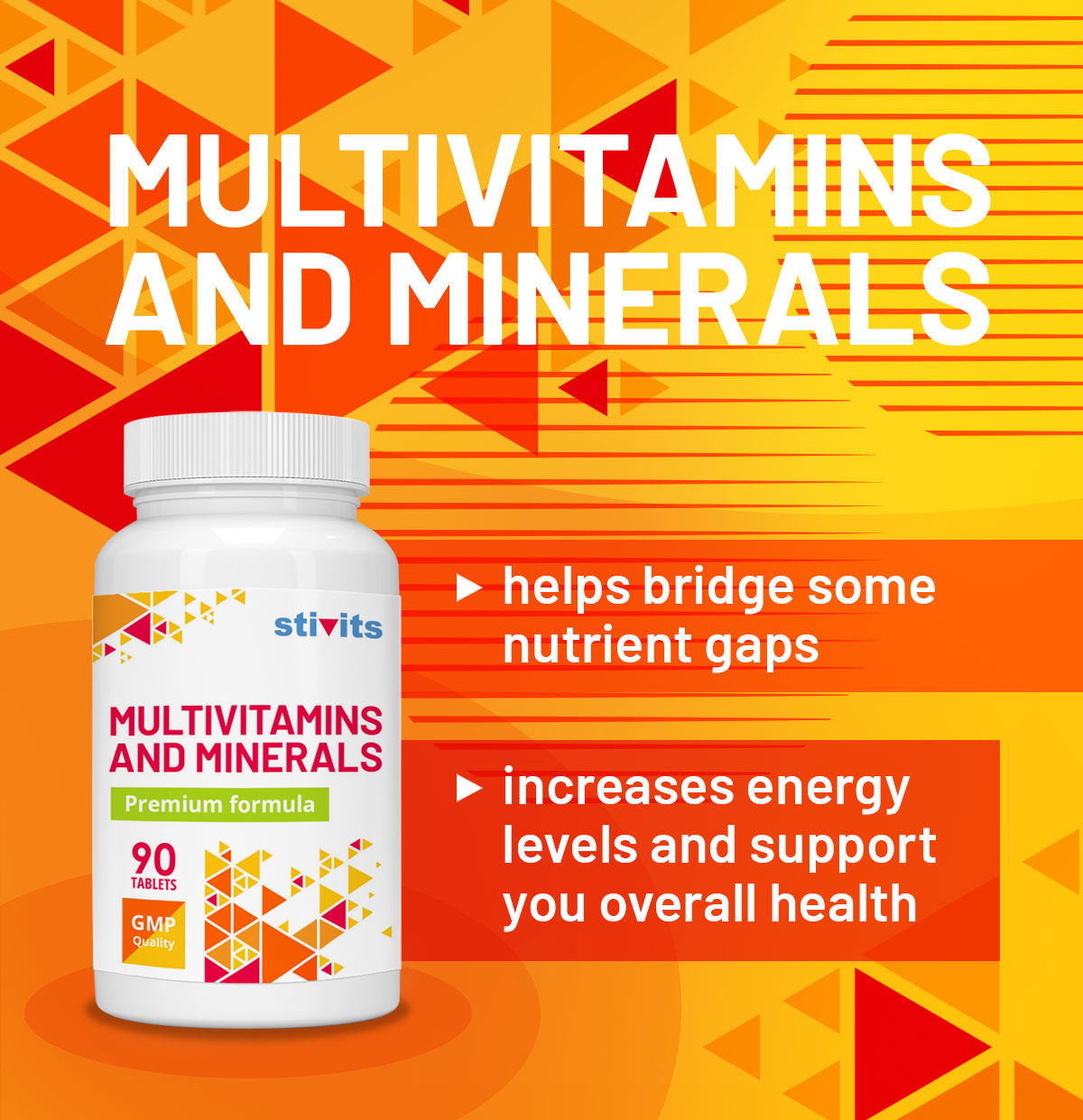 Stivits Multivitamin and Mineral is a dietary supplement designed to provide a comprehensive mix of essential vitamins and minerals. This formulation aims to support overall health by filling potential nutritional gaps and promoting a well-balanced diet.