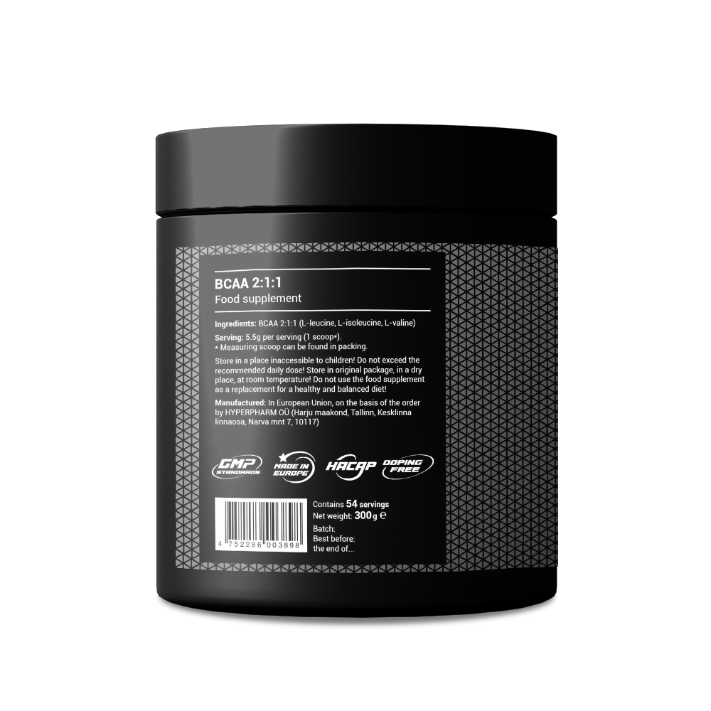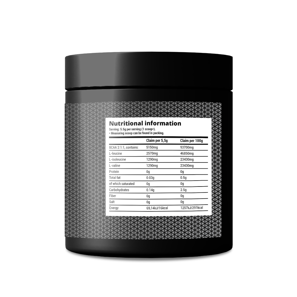 Ingrdients: BCAA 2:1:1 (L-leucine, L-isoleucine, L-valine).
