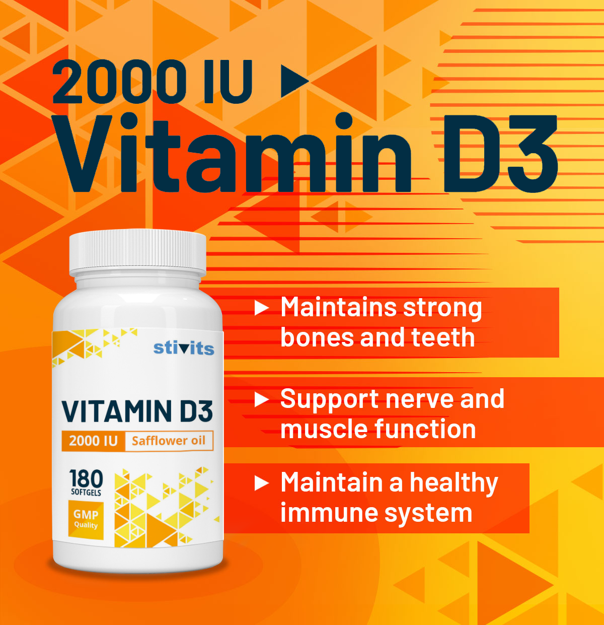 - Vitamin D3 maintains strong bones and teeth by supporting the absorption of calcium and phosphorus. Supports a healthy immune system, nerve and muscle function.