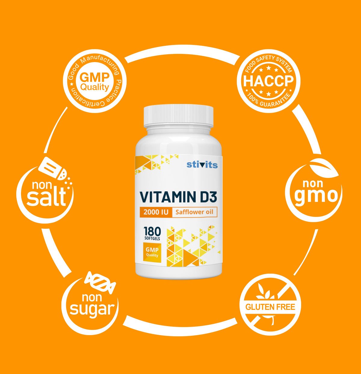 Your body actually makes vitamin D when skin is exposed to sunlight. For anyone who spends little to no time in the sun, though, vitamin D supplements may be helpful. The elderly in particular have been known to have low levels of vitamin D. Get you Stivits Vitamin D3! This unique formula has received a lot of press by researchers and health professionals. It is best known for promoting bone, immune and emotional health. Our potent formula delivers 2,000 IU of vitamin D3 per capsule.